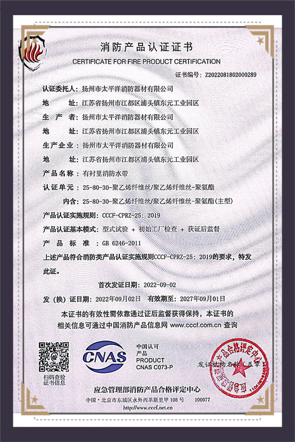 Taizhou Pacific Fire Equipment Co., Ltd. was founded in 1980 and is located in Taizhou City, Jiangsu Province—a place renowned as a "cultural treasure of the Han and Tang dynasties and a renowned riverside city." The company enjoys convenient transportation and a strategic location, with close proximity to National Highway 328 and the Beijing–Shanghai Expressway.